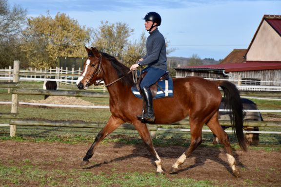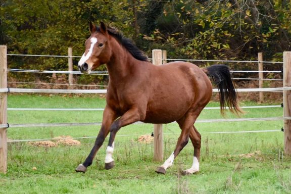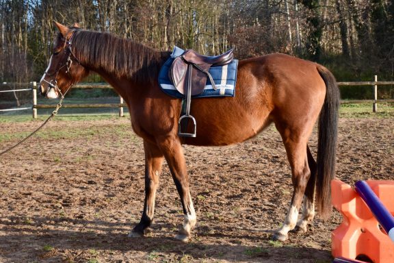 Maléfique est débourrée aux 3 allures par Jason Derache diplômé BPJEPS, BFEEE 1 & 2, cursus Horsemanscience by Andy Booth. Jument très gentille même si encore verte, idéal amateur ! Montée en licol ou filet sans problème. Travaillée aux longues renes.