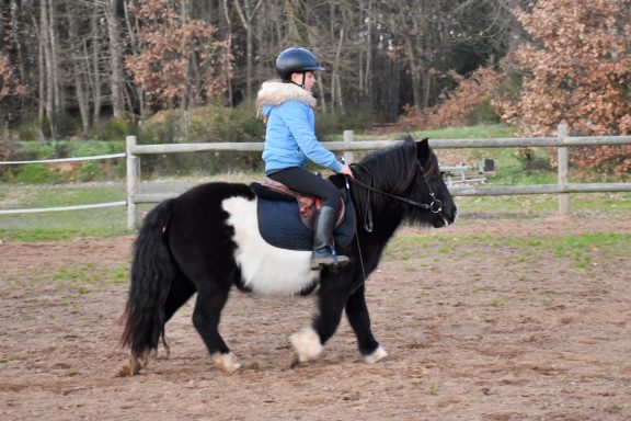 Minion a été pré-débourré à 2 ans aux pas et au trot pour 1 mois, puis repos jusqu'à son débourrage officiel a ses 3 ans. Il est tout juste débourré aux 3 allures. Poney encore très vert mais très gentil.